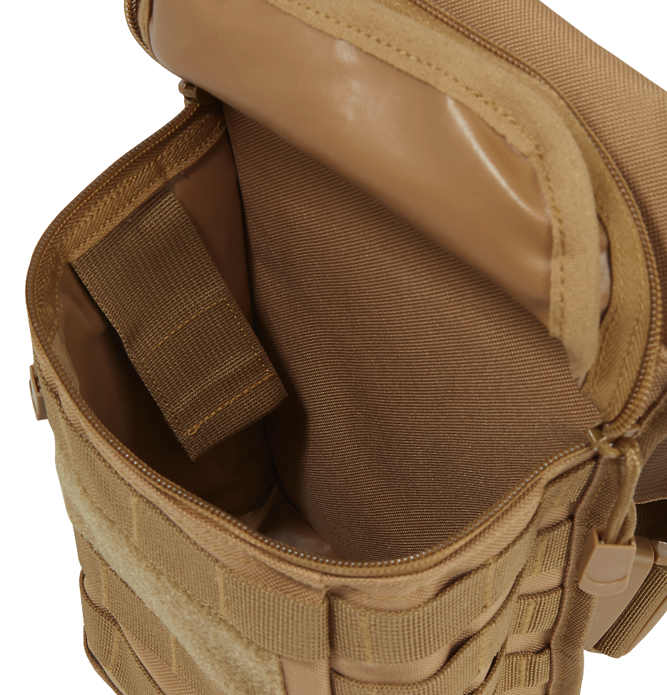 robustes 600DEN Polyester Material / 1 großes Hauptfach mit Reißverschluss und Fixierungsband (22 cm x 14 cm x 9 cm) / 1 Seitenfach mit Reißverschluss / 1 versteckte rückseitige Tasche mit Klettverschluss / Molle-System-Schlaufen / hochwertige Reißverschlüsse mit Zip-Pullern / große Klettfläche für Patches / verstell- und ablösbarer Hüftgurt - max. 135 cm / verstell- und ablösbarer Oberschenkelgurt - max. 80 cm / ideal für Beruf, Freizeit und Sport