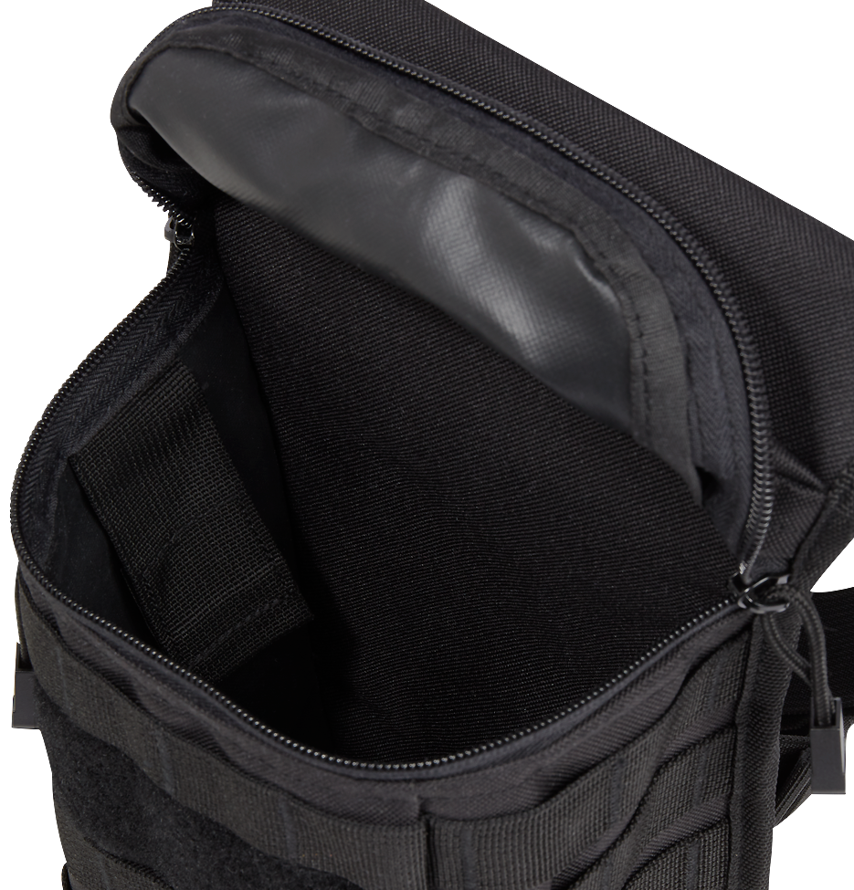 robustes 600DEN Polyester Material / 1 großes Hauptfach mit Reißverschluss und Fixierungsband (22 cm x 14 cm x 9 cm) / 1 Seitenfach mit Reißverschluss / 1 versteckte rückseitige Tasche mit Klettverschluss / Molle-System-Schlaufen / hochwertige Reißverschlüsse mit Zip-Pullern / große Klettfläche für Patches / verstell- und ablösbarer Hüftgurt - max. 135 cm / verstell- und ablösbarer Oberschenkelgurt - max. 80 cm / ideal für Beruf, Freizeit und Sport