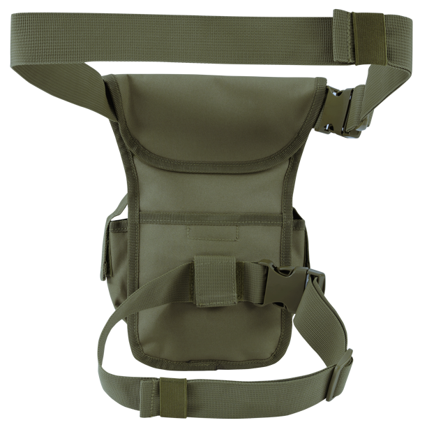 robustes 600DEN Polyester Material / hochwertige Reißverschlüsse mit Zip-Pullern / verstell- und ablösbarer Hüftgurt - max. 135 cm / verstell- und ablösbarer Oberschenkelgurt - max. 80 cm / großes Hauptfach mit Klettverschluss / 2 seitliche Taschen mit Klettverschluss / Smartphonetasche mit Reißverschluss / große Klettfläche für Patches / versteckte Zusatztaschen /