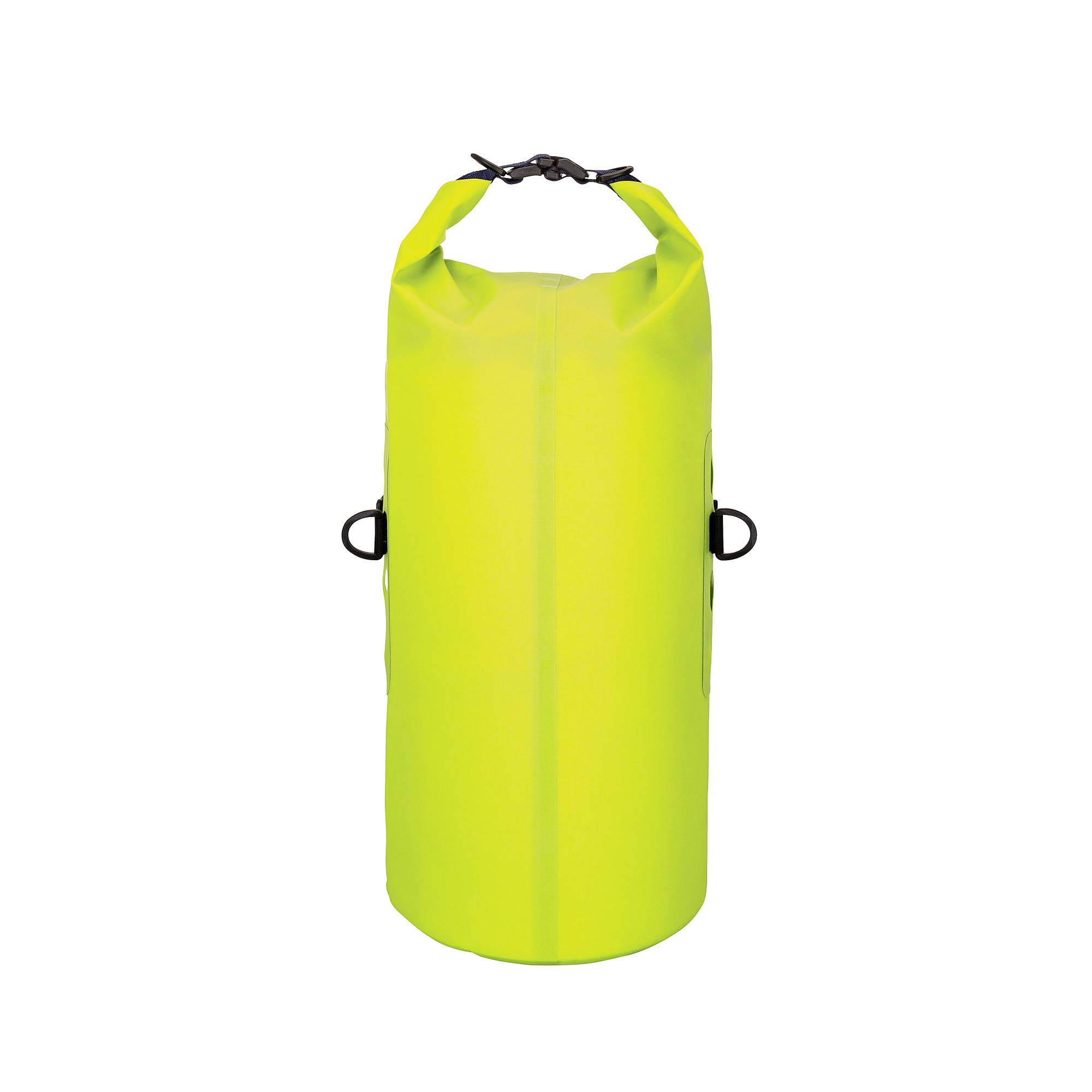 Dieser Packsack aus robustem Material ist wasserdicht dank hochfrequenzgeschweisster Nähte. Er besitzt 15 Liter Volumen und die aufgeschweissten Lasercut-Elemente mit Schlitzen ermöglichen die Befestigung des Rollverschlusses sowie die Fixierung des Packsacks, zum Beispiel im Boot oder auf dem Fahrrad.