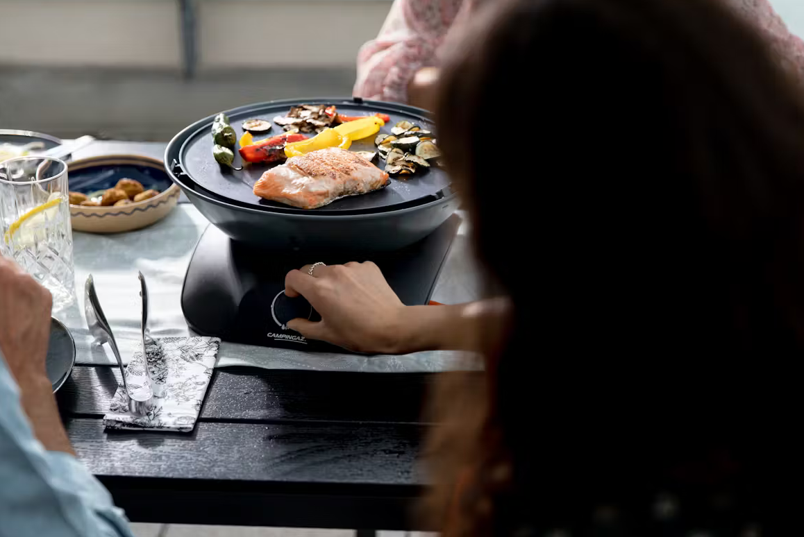 Wir präsentieren unseren allerersten Gaskartuschen betriebenen Tischgrill mit flachem Design, der ein 360° Grillerlebnis ganz bequem im Sitzen vom Tisch aus ermöglicht. Der Campingaz®® 360 Grill bietet umfangreiche Grill- und Kochmöglichkeiten mit der integrierten, gerippten Grillplatte, einer flachen Kontaktgrillplatte sowie Topfträgern zum Kochen wie auf einem Herd. Der praktische Grill wird komplett vormontiert geliefert und fügt sich mit seinem schicken, aber schlichten Design harmonisch in die städtische Umgebung und in jedes Wohnwagenabenteuer ein. Leicht, kompakt und praktisch und daher für jede Situation geeignet, egal wohin es Sie verschlägt.