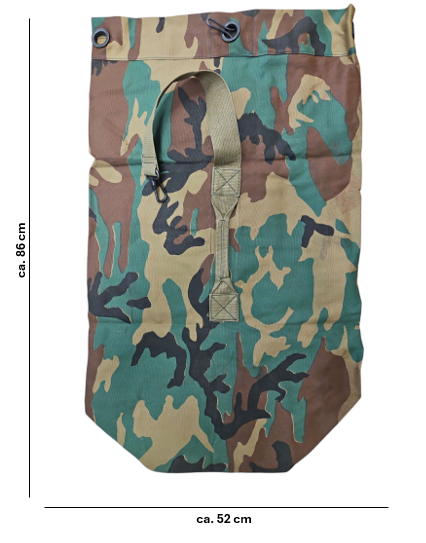 - Schwere reine Baumwolle- Verschlusshaken am Trageriemen- Grösse ca. 86cm x 52cm- Farbe: tarn